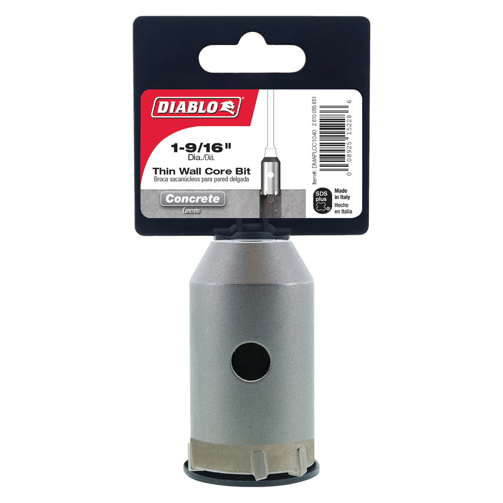 Diablo’s SDS-Plus Thin Wall Core Bit range provide one of the fastest and longest lasting coring solutions on the market for concrete applications. Optimized with a unique brazing and hardening process, the carbide tips extends life and productivity, allowing users to drill fast, clean holes. Two ejector holes provide, if needed, easy removal of core. Optimized for maximum performance in corded and cordless SDS Plus rotary hammers.