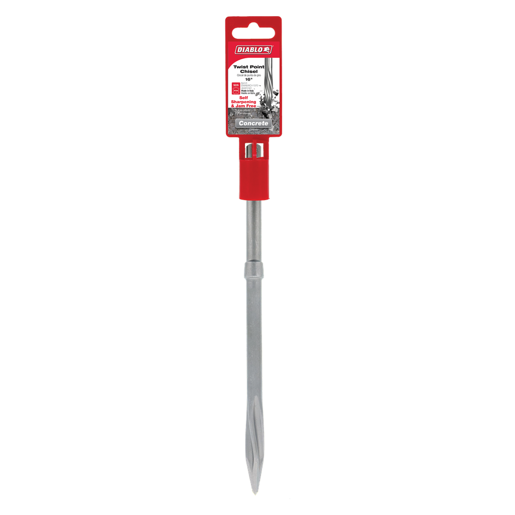 Diablo’s SDS-Plus and SDS-Max Twist Point Chisels deliver extreme durability and stability in general demolition work and clearing reinforcements. The reflective energy collar converts impact-generated energy into new energy for maximum material removal. A unique heat treatment process strengthens the steel body to withstand the stress and impact of high-powered hammer drills. The Twist Point design provides wider flutes for faster chipping and jam-free material evacuation. Self-sharpening tip increases productivity and extends the tools life. Optimized for maximum performance in corded and cordless SDS-Plus and SDS-Max rotary hammers.