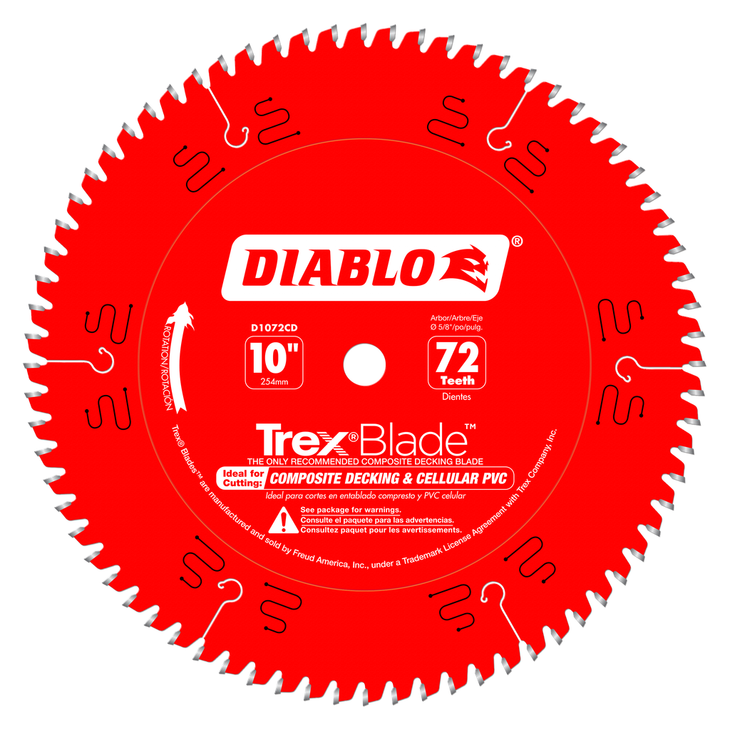 Diablo’s TrexBlade is the only recommended composite decking by Trex Company when cutting composite decking materials. These new blades deliver maximum performance and highest quality of finish; making it a ‘must-have’ tool for both professionals and DIYers planning composite decking projects. Diablo’s new saw blade series has a modified triple chip tooth grind design, Perma-SHIELD® non-stick coating, and specific TiCo™ Hi-Density carbide to deliver more efficient and cleaner cuts with no swirl marks, less “gumming” of blade teeth and longer cutting life .