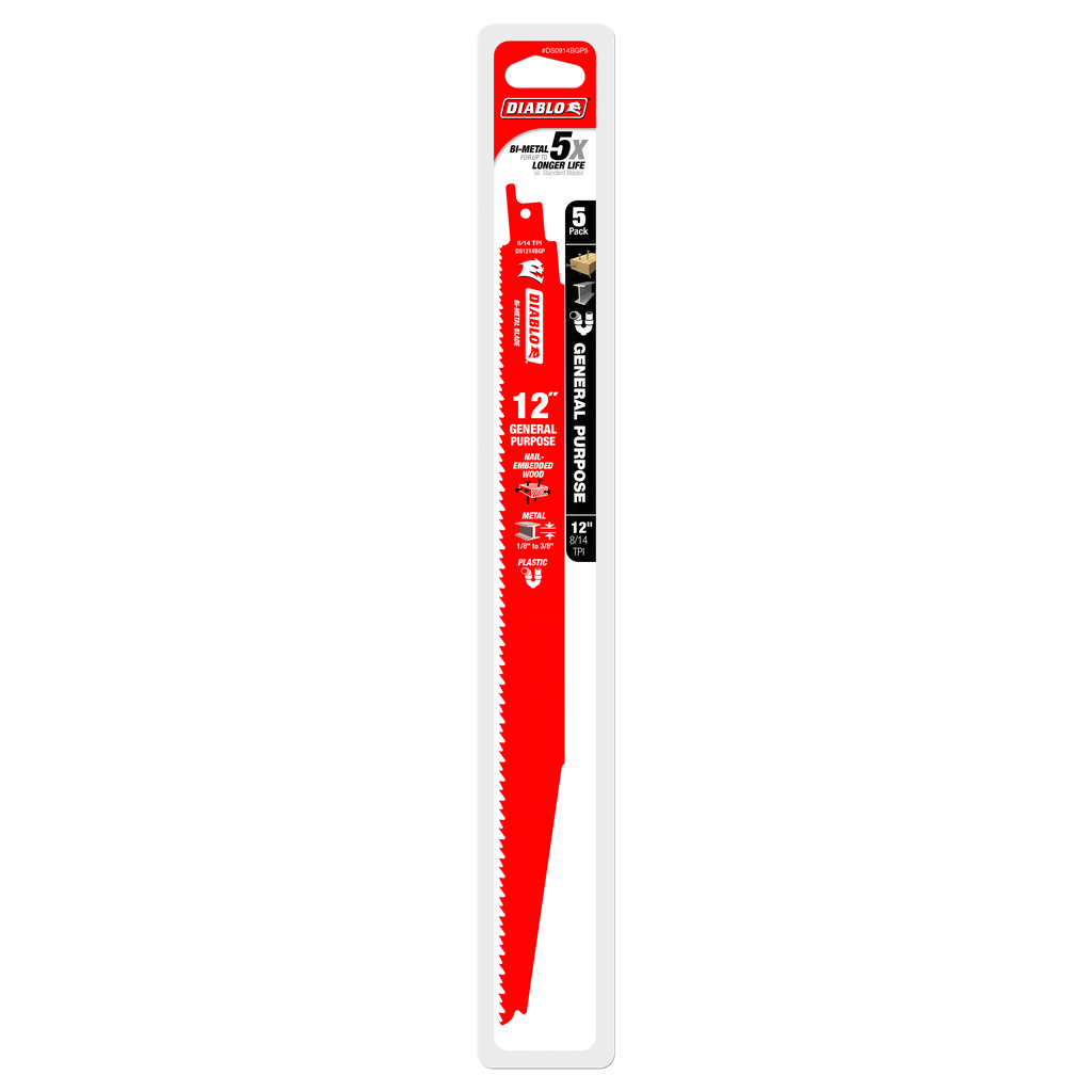 Diablo 12 in. Bi-Metal Recip Blade for Nail-Embedded Wood, Metal, and Plastic (5-Pack)