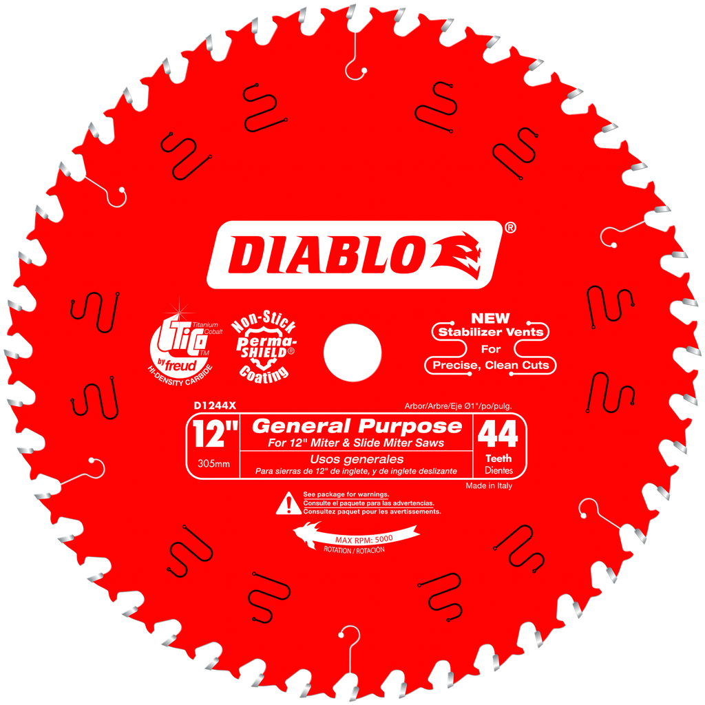 Diablo’s general purpose blade is ideal for cutting oak, pine, plywood, pressure treated lumber and beams. An excellent choice for table & miter saws, Diablo’s blade leaves a smooth cut in a variety of applications, reducing the need to change blades between tasks. Use it for rip cuts with a smoother finish than dedicated ripping blades, or make quality crosscuts in solid wood or plywood. Great for both sliding and “chop” style miter saws as well as table saws.