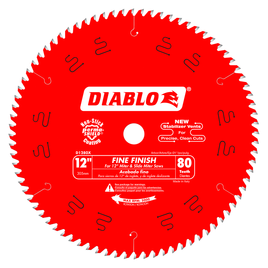 Fine Finish blades let trim crews get the most out of sliding or “chop” style miter saws, as well as jobsite or workshop table saws. The special cutting geometry and high tooth count produce extremely smooth cuts while minimizing “grabbing” or blowout. Diablo’s particular blade is the ideal choice for trim carpenters because it leaves a smooth surface that requires little to no sanding. It’s ideal for crosscutting oak, pine, melamine, plywood, and moulding.