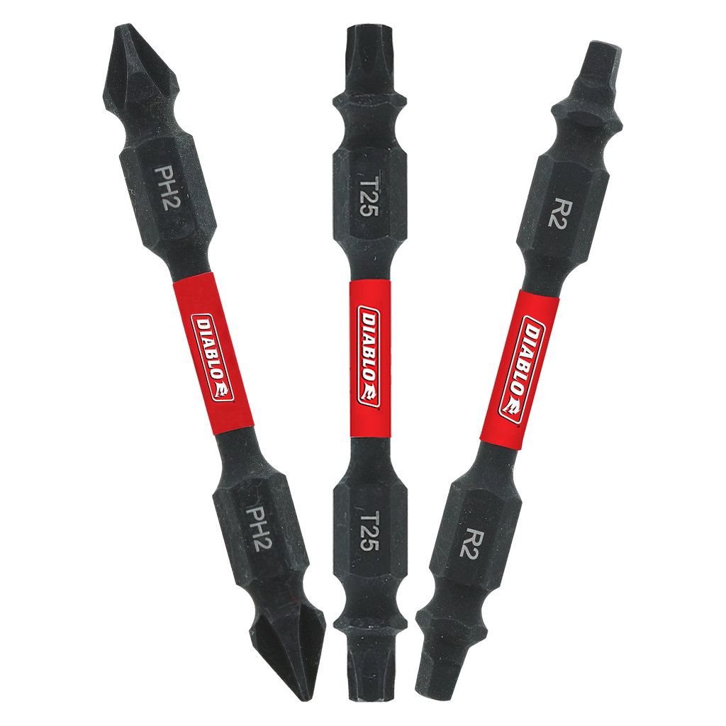 Diablo’s driver bit range of Phillips, Square and Torx bits delivers maximum performance, extreme durability and up to 50x longer life when installing and removing fasteners. An optimized tip design provides a strong, precise grip that reduces wear, stripping and slippage. Torque Resistant Design absorbs torque for less stress at the tip when tightening and removing nuts and screws. This range is Impact Strong™, delivering increased shank stability and durability in cordless and corded impact and drill drivers.