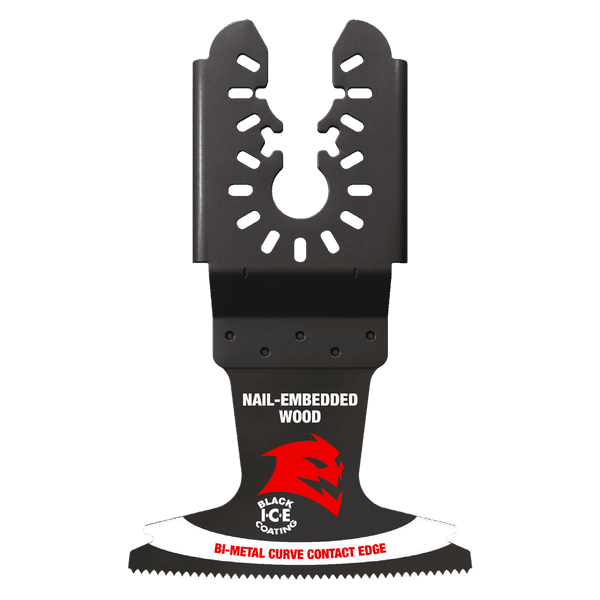 Diablo’s universal fit bi-metal oscillating blades feature application specific designs that deliver maximum durability and longer life in nail-embedded wood applications. These high-performance blades feature an ultra-hardened cutting edge to deliver up to 5X longer life than standard blades. Curve contact edge creates a pilot for precise, clean plunge cuts with less vibration. Black I.C.E. (Industrial Cooling Element) keeps the teeth cool and build up free for fast, clean cuts. The blade’s universal fit, adapter-free design easily attaches most tools, with the exception of Starlock tools.