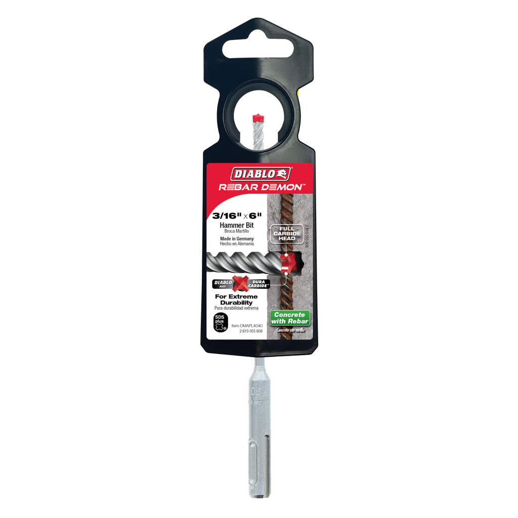 Diablo 3/16 in. x 4 in. x 6 in. Rebar Demon™ SDS-Plus 4-Cutter Full Carbide Head Hammer Drill Bit