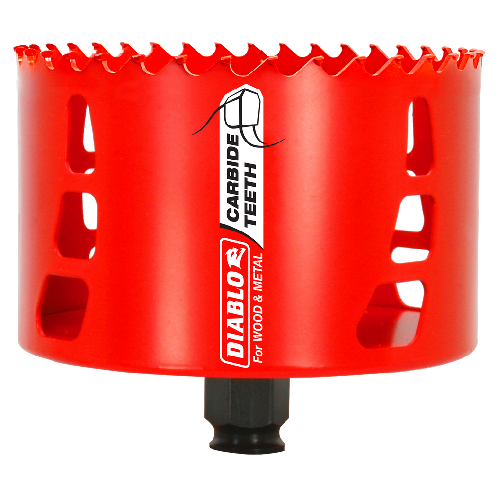 Diablo introduces the first carbide-tipped hole saws on the market to cut both wood and metal (wood, nail-embedded wood, plastic, aluminum, metal, cast iron, stainless steel and metal). Delivering 50 times longer cutting life than bi-metal, these new carbide-tipped hole saws offer faster cutting performance and increased productivity.