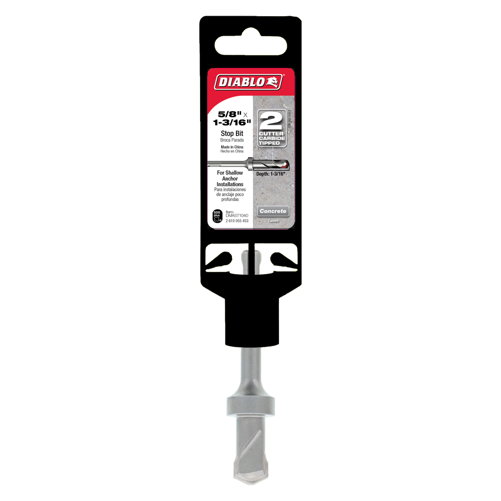 Diablo’s SDS-Plus 2-cutter carbide-tipped hammer stop bits provide one of the fastest and longest lasting drilling solutions on the market for concrete. Featuring a Stop Collar, these bits have a pre-determined stopping point for efficient shallow anchor installations. Optimized with a unique brazing and hardening process, the carbide tips extends life and productivity, allowing users to drill fast, accurate holes. Optimized for maximum performance in corded and cordless SDS-Plus rotary hammers.
