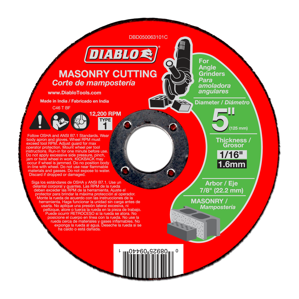 Diablo’s premium masonry cutting discs provide superior performance and increased productivity. Featuring a premium silicone carbide blend, these discs cut through material faster than other cut-off discs and offer an extra long cutting life. Fully reinforced for use in hand-held cut-off work. Ideal for use when working in hard to reach areas.