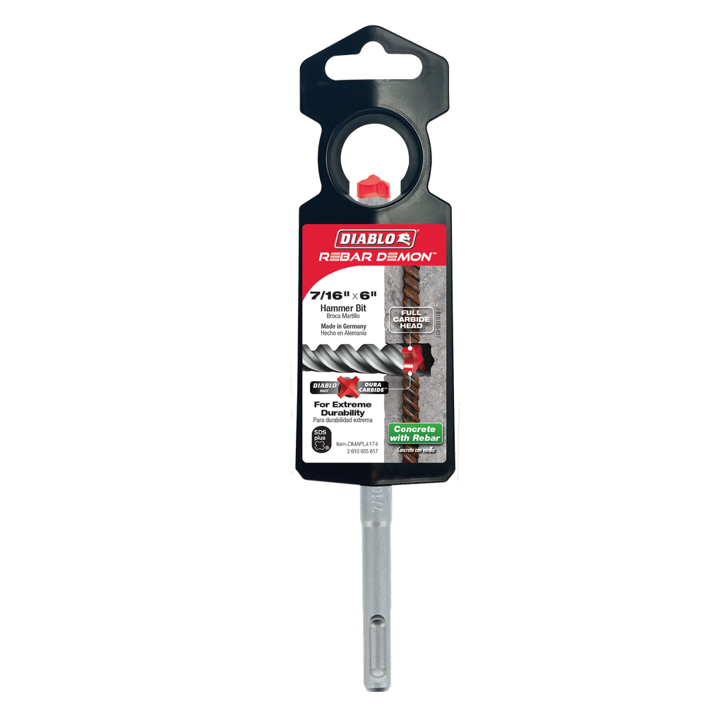 Diablo 7/16 in. x 4 in. x 6 in. Rebar Demon™ SDS-Plus 4-Cutter Full Carbide Head Hammer Drill Bit