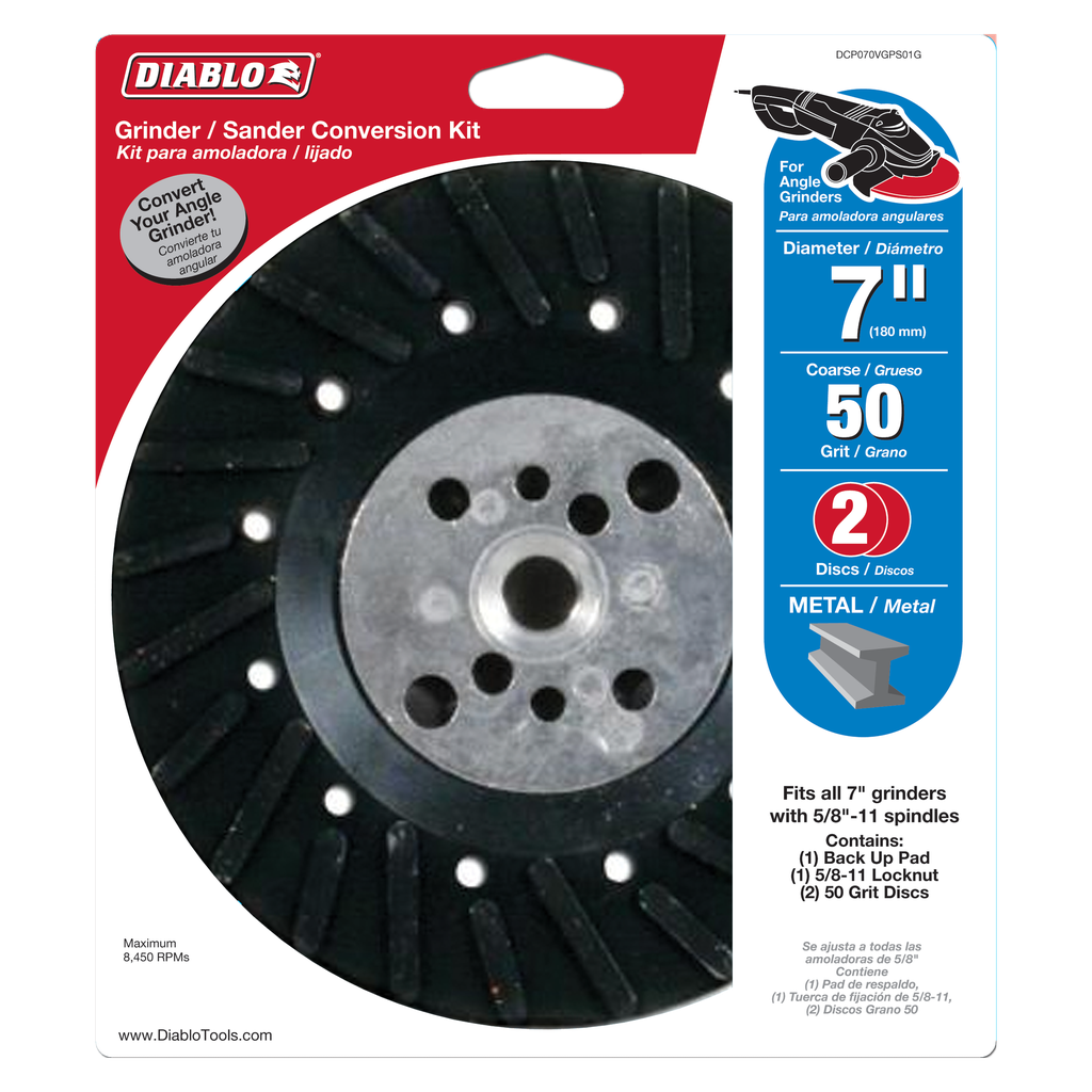 Transform your angle grinder into a powerful sanding tool with the innovative conversion kit from Diablo Tools. This versatile set includes a 7-inch back-up pad, a 5/8-11 locknut, and two 50-grit fiber discs, allowing for effective sanding on various materials such as rebar, angle iron, and steel bar. Designed for maximum compatibility, it fits all 7-inch grinders with 5/8″-11 spindles and operates at a maximum RPM of 8,450, ensuring reliable performance across heavy-duty applications. This conversion kit not only expands the functionality of your grinder but also enhances your toolkit’s versatility, making it an essential addition for any DIY enthusiast or professional tradesperson.