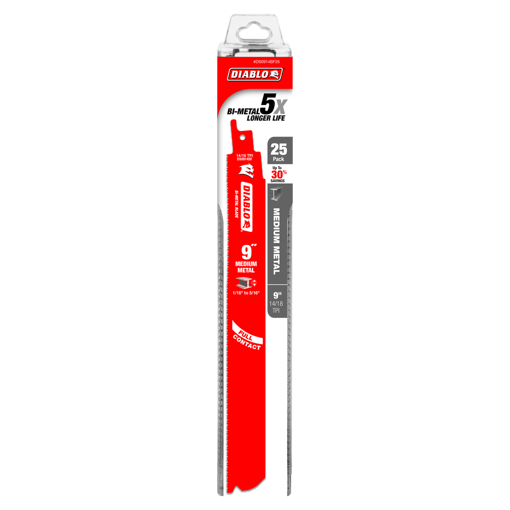 Diablo 9 in. Bi-Metal Recip Blade for Medium Metal Cutting (3/32 in. to 5/16 in.) (25-Pack)
