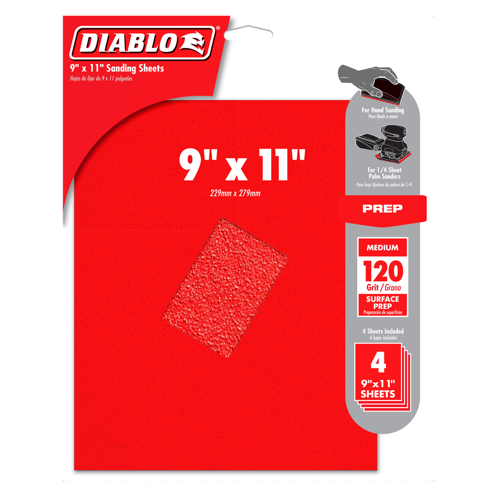 Diablo 9 in. x 11 in. 120-Grit (Medium) Sanding Sheet (4-Pack)