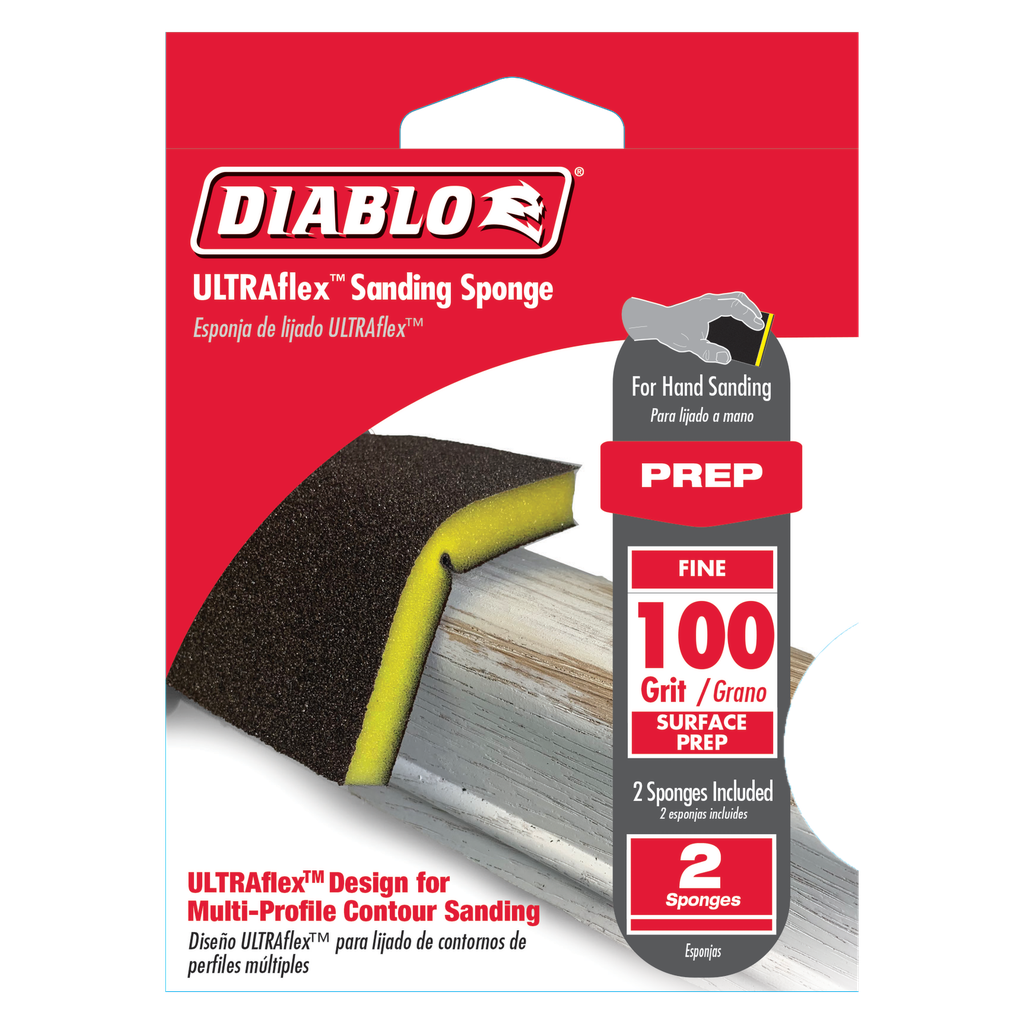 Diablo’s premium ULTRAflex™ sanding sponges include break-through innovations that improve performance, extend sanding life and increase hand-sanding productivity. Featuring a premium aluminum oxide blend, these foam sponges remove material faster and offer up to 3X longer sanding life versus standard hand sanding sheets. ULTRAflex™ foam technology allows flexible, multi-profile contour sanding in hard to reach areas. The full contact design provides maximum sanding potential by delivering consistent scratch patterns and ultra-smooth finishes. The superior grain bonding system, ENDURA-BOND™, provides Diablo’s sanding sponges with longer life and extreme durability.
