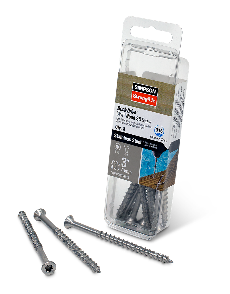 DWP #10 3IN 316SS FLAT T25 8CT