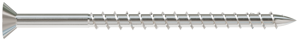 The Strong-Drive DWP Wood SS screw is a powerful, load-rated fastening solution for deck, dock and general exterior applications where extra corrosion protection and load specifications are required. The Strong-Drive DWP Wood SS flat-head screws are structural fasteners that have been tested in accordance with ICC-ES acceptance criteria AC233 and are load rated for shear, pull-through and withdrawal resistance. With its specially designed sharp-point and unique box-threads, the DWP Wood SS is a great solution for exterior structural connections, such as on docks, boardwalks and decks near water or where they will be exposed to high or severe corrosion.