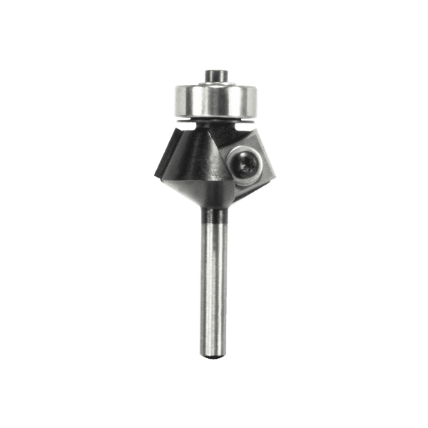 You’ll always have a sharp edge available with our Insert Bevel Trim Bits. Each solid carbide insert knife has four cutting edges. When one edge dulls, rotate the knife to use a fresh edge and continue creating a clean, beveled edge on plastic laminates. When all four edges are used, install a new replacement throwaway knife (CG01MBA3). Use bits in hand-held or table-mounted routers or laminate trimmers.
