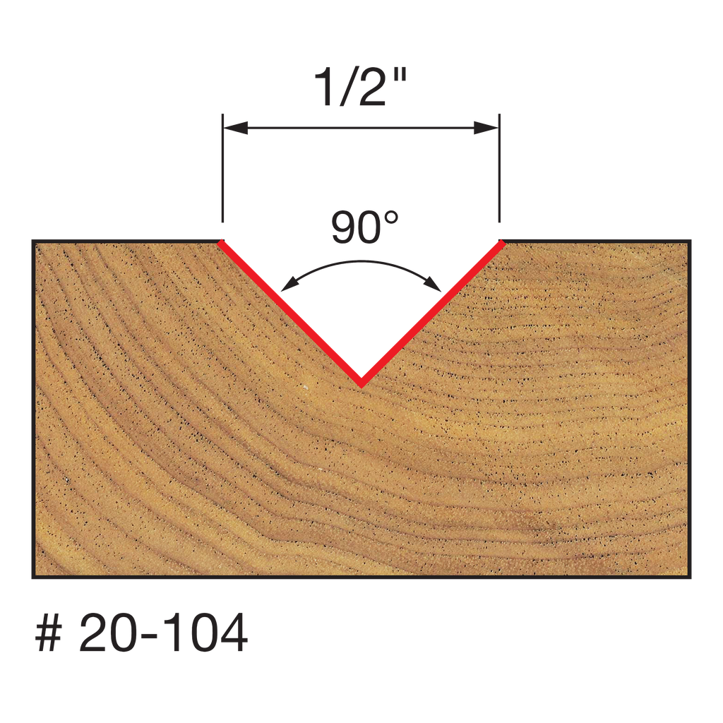 V” Grooving bits are the perfect choice for making signs, engraving wood plaques, adding decorative accents to furniture or adding visual interest to millwork. Use these versatile bits in hand-held, table-mounted or CNC routers to rout hardwood, softwood, plywood, plastics and composite material. Please note that item 20-502 includes a top bearing to follow your templates or fixtures.