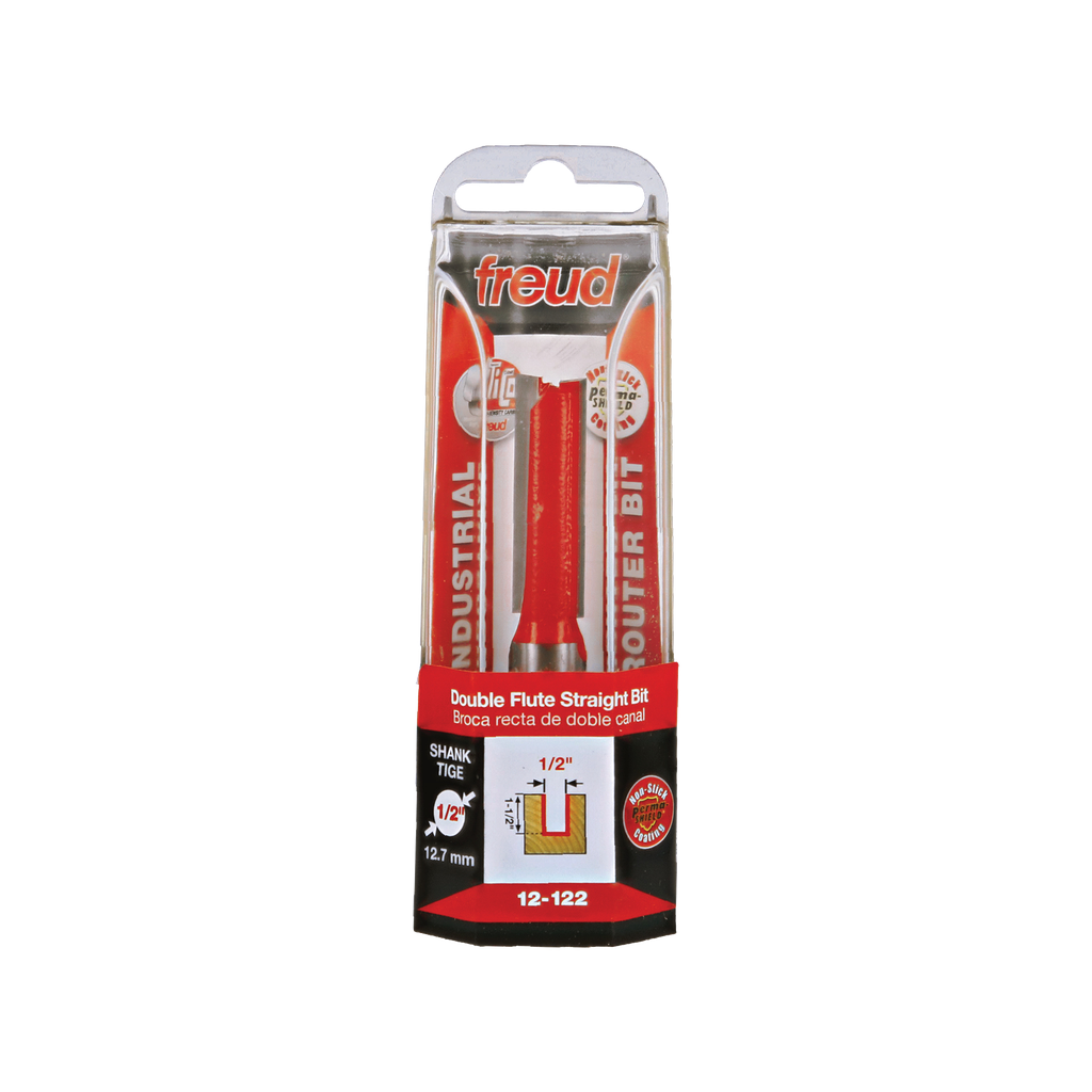 Freud 1/2″ (dia.) Double Flute Straight Bit with 1/2″ shank, 3-1/8″ overall length #12-122