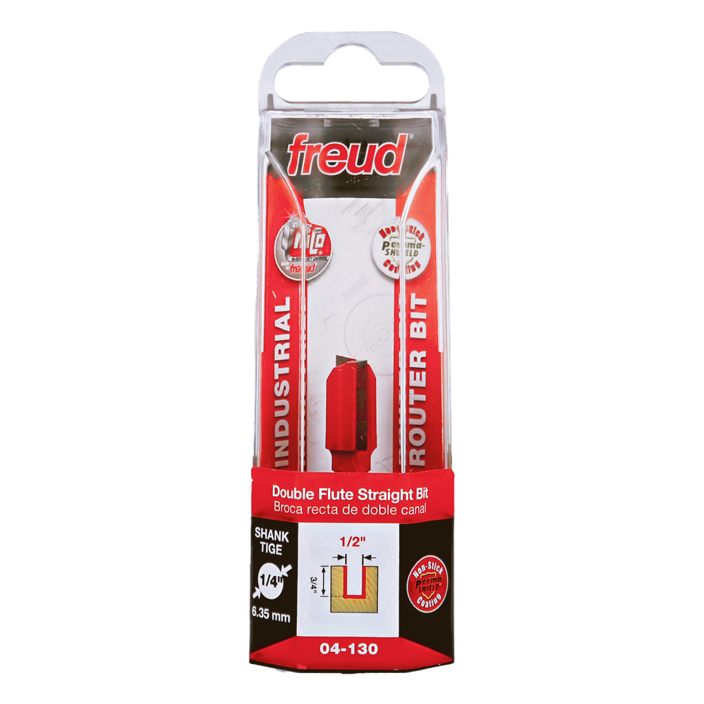 Freud 1/2″ (dia.) Double Flute Straight Bit with 1/4″ shank, 2-1/4″ overall length #04-130