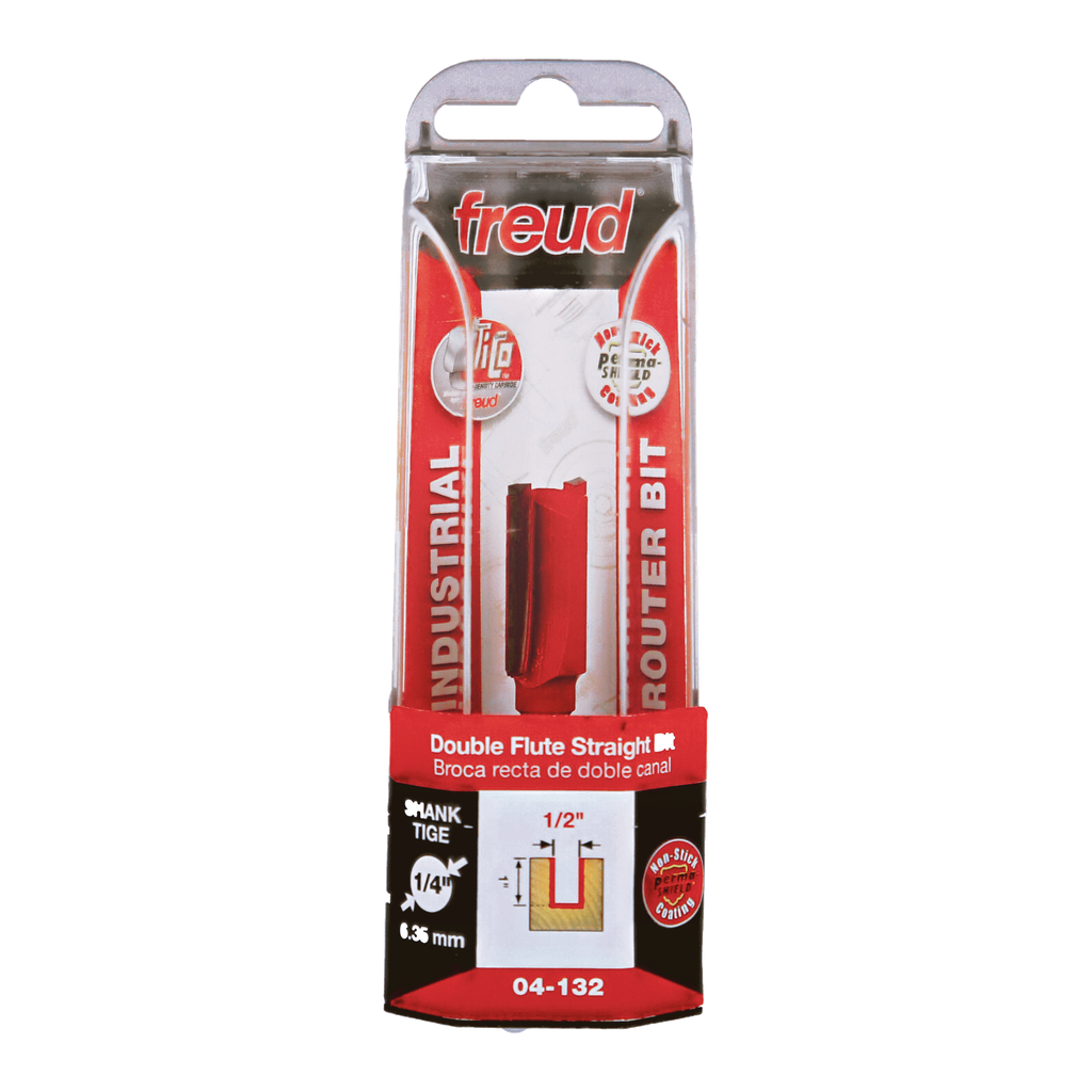 Freud 1/2″ (dia.) Double Flute Straight Bit with 1/4″ shank, 2-1/8″ overall length #04-132
