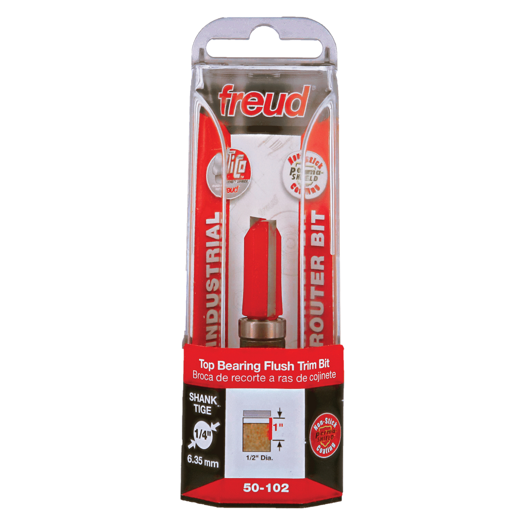 Freud 1/2″ (dia.) Top Bearing Flush Trim Bit with 1/4″ shank, 2-5/8″ overall length #50-102