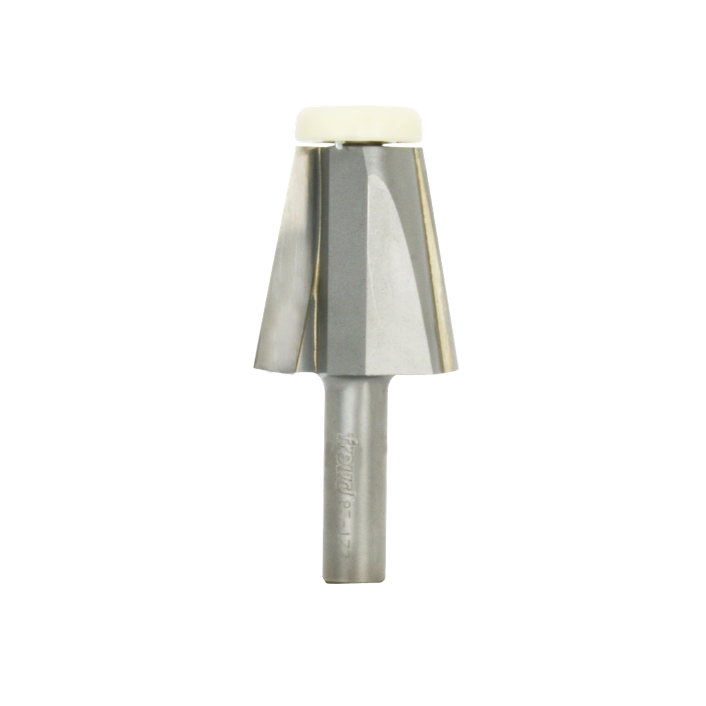 Freud Bevel Bowl Bits are precisely designed to trim the joint between solid surface countertops and solid surface sink bowls with a beveled edge. Choose the cutting angle that matches the bowl you are using. Bits include non-marring synthetic bearings to protect the finished surface of the bowl. Specially formulated carbide is ideal for fabricating solid surface materials. Use in hand-held portable routers.