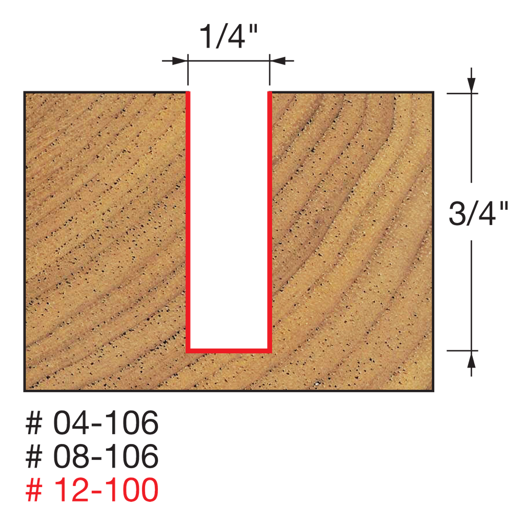 Freud 1/4″ (dia.) Double Flute Straight Bit with 1/2″ shank, 2-3/8″ overall length #12-100