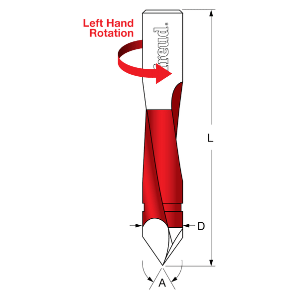 Freud 1/4” (Dia.) Through Hole Bit with Left Hand Rotation 57.5mm overall length #TH63557L