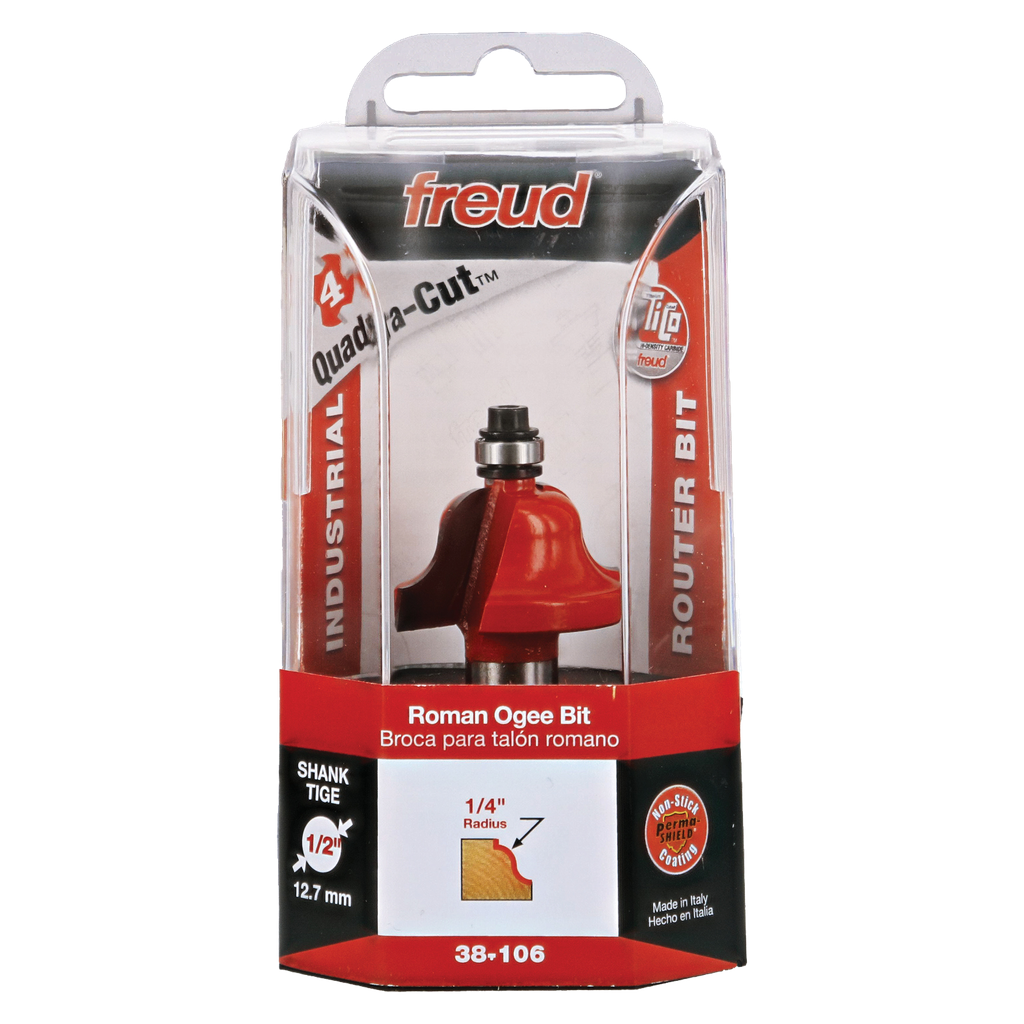 Freud offers a huge selection of Decorative Edge Bits, most featuring our patented Quadra-Cut design for an extra-fine finish. Choose the profile you need to add distinctive design to cabinets, furniture, plaques, and millwork with these decorative edging bits. Ideal for routing hardwood, softwood, plywood or composites using hand-held or table-mounted routers.