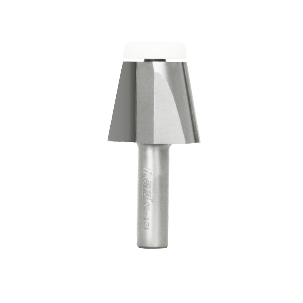 Freud Bevel Bowl Bits are precisely designed to trim the joint between solid surface countertops and solid surface sink bowls with a beveled edge. Choose the cutting angle that matches the bowl you are using. Bits include non-marring synthetic bearings to protect the finished surface of the bowl. Specially formulated carbide is ideal for fabricating solid surface materials. Use in hand-held portable routers.