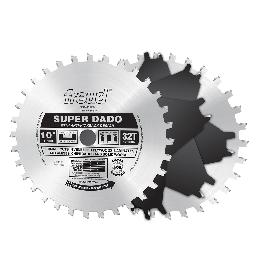 Elevate your woodworking projects with the 10″ Super Dado Sets from Freud Tools, expertly designed for precision and versatility. This set excels in cutting through a variety of materials, including softwoods, hardwoods, veneered plywood, and laminate, allowing for clean edges and flat-bottom grooves that are virtually splinter-free. The blades feature a Premium TiCo™ HI-Density Carbide Crosscutting Blend, ensuring maximum performance while the Silver I.C.E. Coating keeps the blades running cooler and cleaner, preventing unwanted buildup.