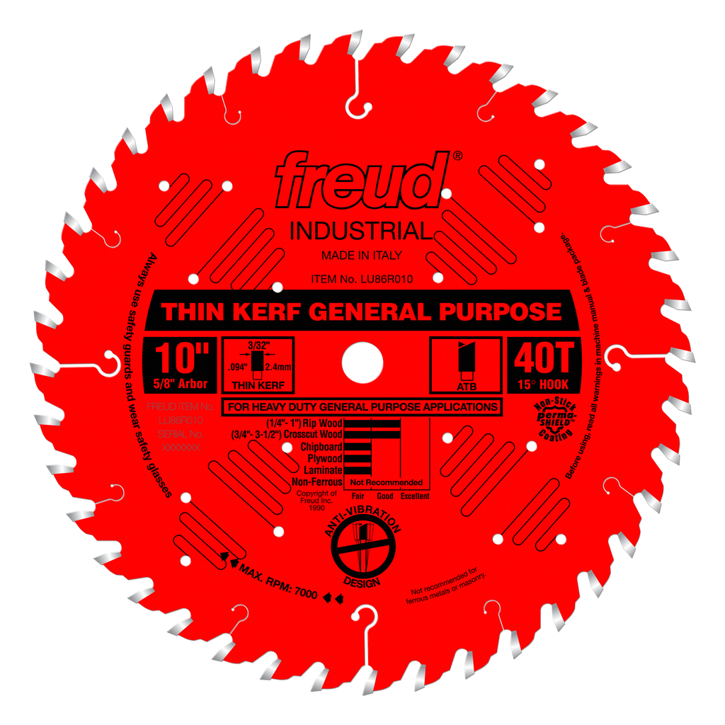 Freud 10″ x 40T Thin Kerf General Purpose Blade #LU86R010