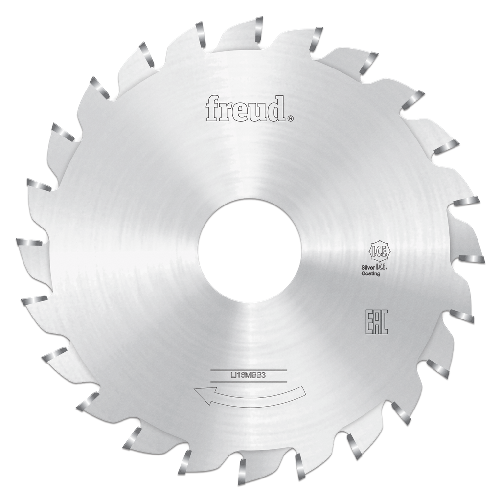 Engineered specifically for precision cutting in busy workshop environments, this 100mm scoring sawblade from Freud Tools is a crucial tool for professionals working with coated panels on sizing machines. Its adjustable kerf ensures compatibility across a variety of materials, including melamine, veneered plywood, MDF, and laminate, making it versatile enough for a range of applications. The blade’s double-sided design is enhanced with a Silver I.C.E. coating that reduces build-up on the surface, allowing for cooler and cleaner cutting processes. Featuring 12+12 teeth with an 11° hook angle, this sawblade guarantees a smooth finish, while thickness adjustments are effortlessly managed by the machine, eliminating the need for spacers. Ideal for everything from chipboard to fiberboard, this scoring solution is built for reliability and efficiency in every cut.