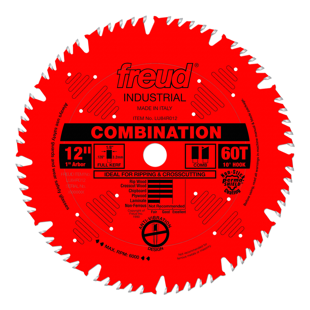 This ultimate combination blade combines one flat tooth for ripping, followed by four alternate top bevel teeth for crosscutting and a large gullet for effective chip clearance. This blade also features laser cut anti-vibration slots, practically eliminating the vibration that resonates in standard blades. With this ultimate combination blade, there is no need for stabilizers.