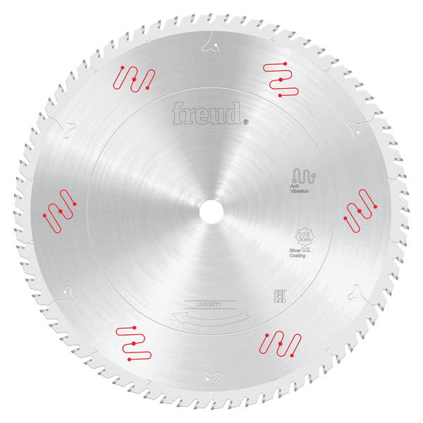 Freud’s range of dedicated saw blades for picture frames and molding saw blades deliver superior finishes in solid wood and man-made materials when in crosscutting and mitering applications. Freud-made TiCo™ Hi-Density Carbide coupled with Freud’s Silver I.C.E (Industrial Cooling Element) [or Perma-SHIELD coating] gives these blades the longest run time of other similar blades available today. Freud’s unique tooth design and anti-vibration reeds, lead to a high precision, exacting cut of frames and moldings, where the items must be coupled to perfectly match, without chipping, even when covered in paint, metallic foil, filler, plaster and other abrasive and fine materials.