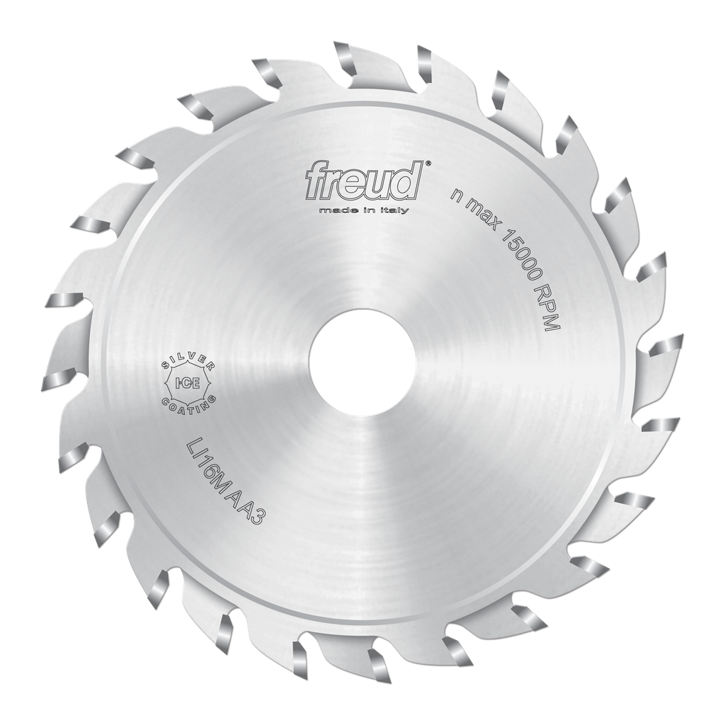 Engineered for precision and efficiency, this 120mm Split Scoring blade from Freud Tools is specifically designed for cutting coated panels on sizing machines. It features an ATB tooth configuration with a 5° positive cutting angle, allowing for clean and accurate cuts across various materials including plywood, MDF, and chipboard. The innovative Silver I.C.E. Coating significantly minimizes buildup, ensuring the blade operates cooler and cleaner, while the adjustable kerf provides versatility without the need for additional spacers. With 12+12 teeth and a robust 3.6mm plate thickness, this scoring sawblade is a reliable choice for professionals seeking exceptional performance in woodworking applications.
