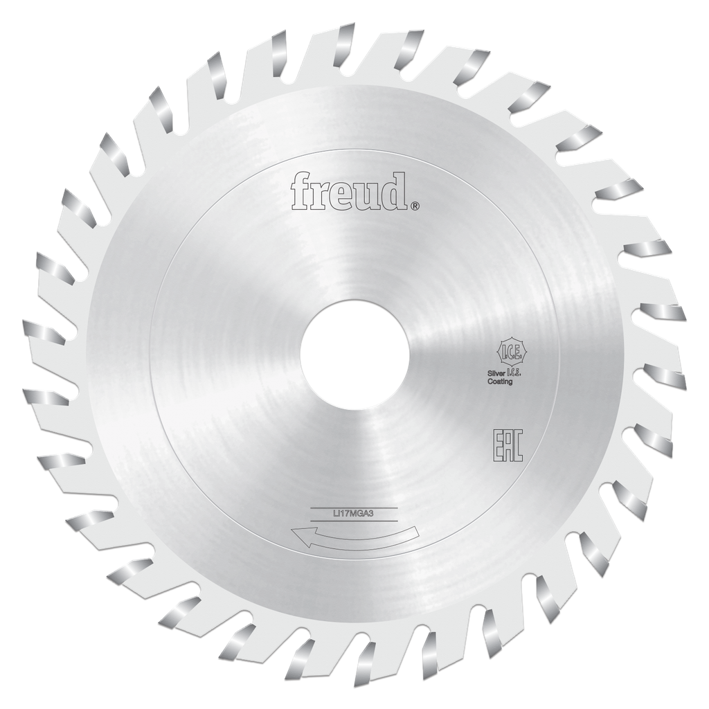 Engineered for precision cutting, the Freud Tools 120mm Flat Tooth Scoring blade is ideal for working with coated panels, including MDF and double-sided laminates. It features a flat tooth design with a positive cutting angle, ensuring clean and efficient cuts while minimizing edge chipping. The Silver I.C.E. Coating enhances performance by preventing buildup on the blade, which helps maintain cooler and cleaner operation during use. With 30 teeth and a 10° hook angle, this scoring blade is perfectly suited for use on sizing machines, making it an essential tool for woodworkers and panel fabricators seeking reliable results.