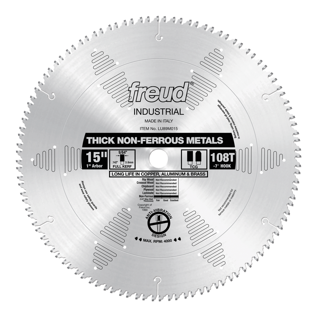 Freud 15″ x 108T Thick Stock Aluminum Metal Blade #LU89M015