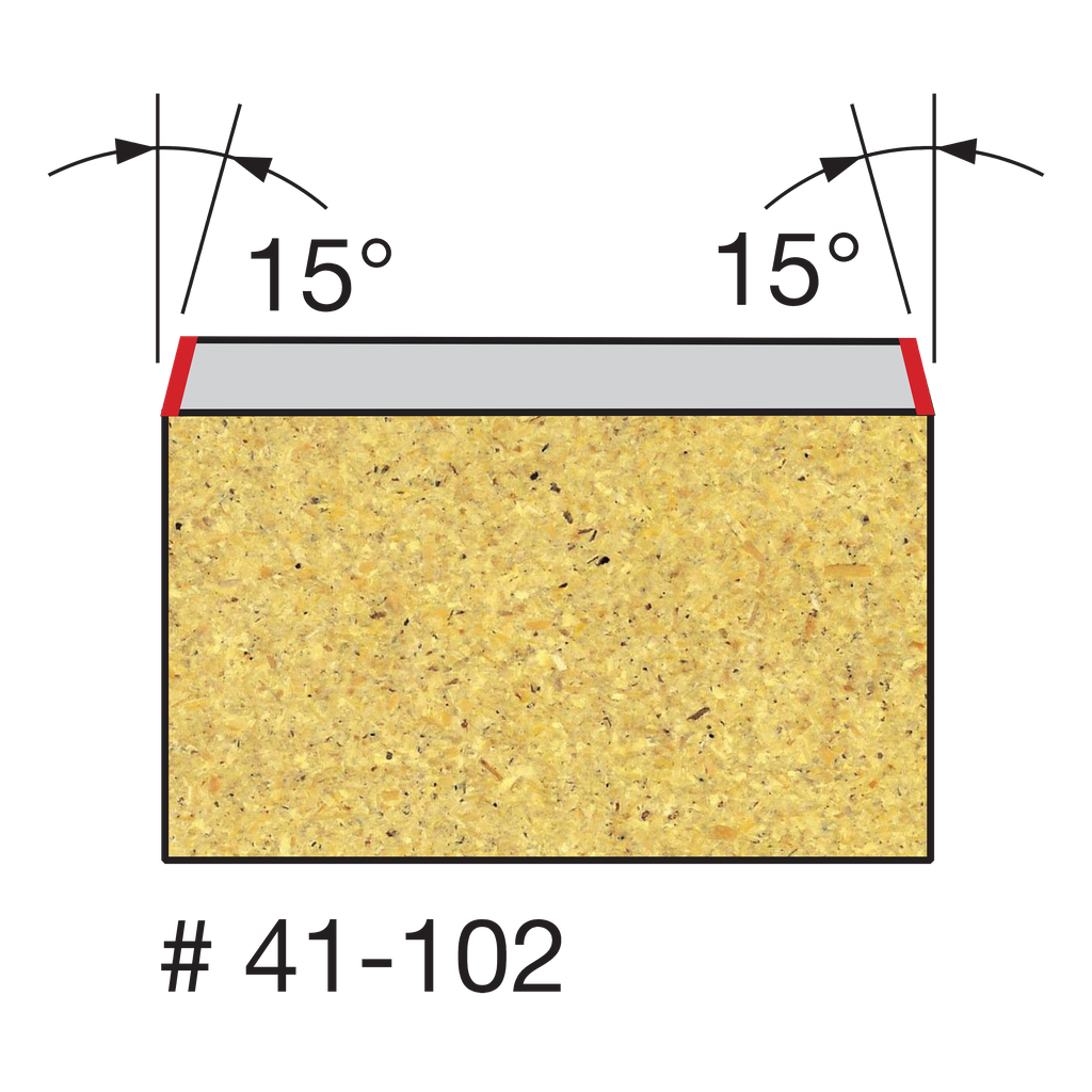 Bevel Trim Bits produce a clean, finished edge on plastic laminates with little or no filing. Choose among bevel angles from 8 degrees to 45 degrees in the 41-series bits, which also include a ball bearing guide. Or choose the solid carbide 66-100 for a 7 degree bevel in a very cost effective tool.