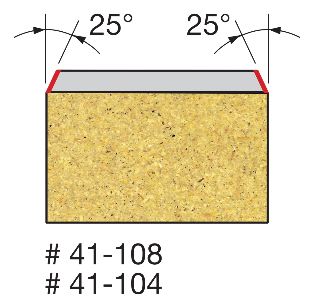 Bevel Trim Bits produce a clean, finished edge on plastic laminates with little or no filing. Choose among bevel angles from 8 degrees to 45 degrees in the 41-series bits, which also include a ball bearing guide. Or choose the solid carbide 66-100 for a 7 degree bevel in a very cost effective tool.