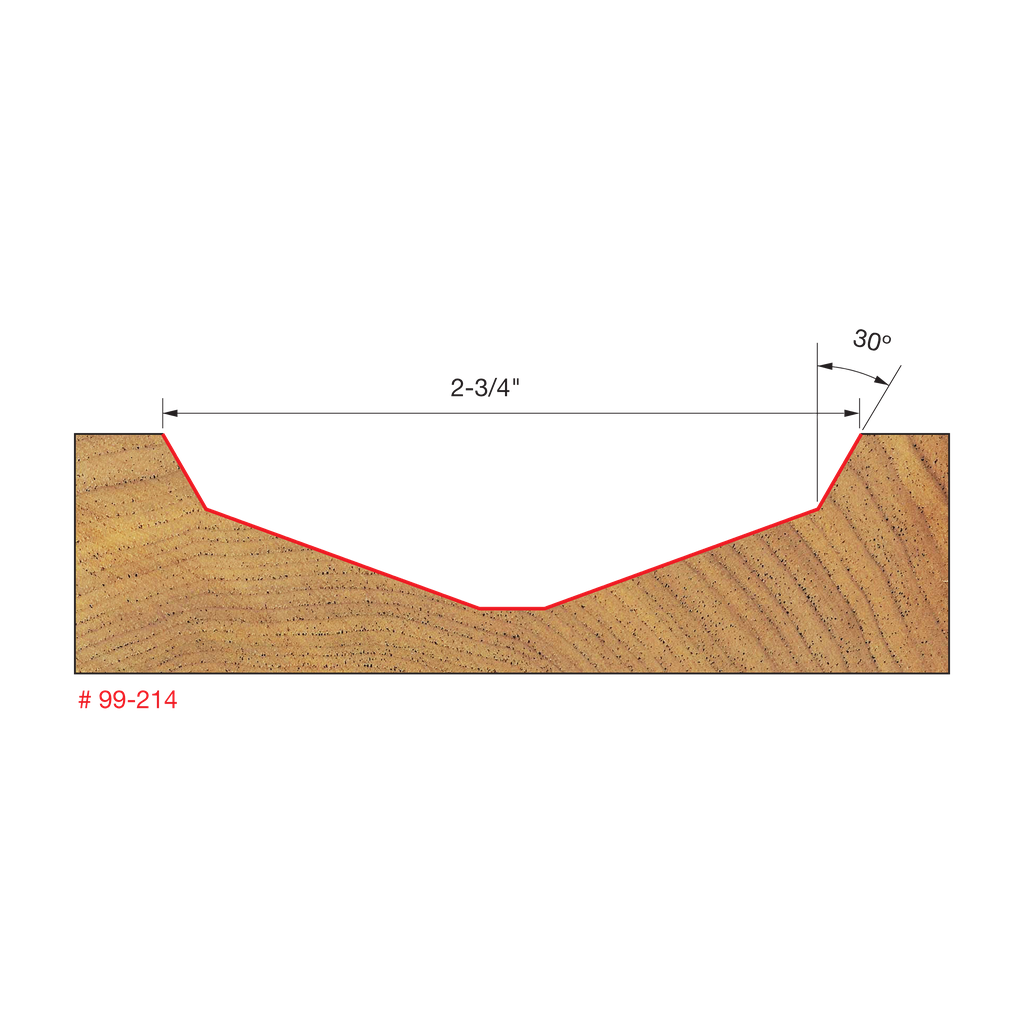 The French Provincial Bit produces beautiful raised panels with a 20 degree bevel for doors and paneling. Or adjust the depth of cut to produce grooves of any width up to the full 2-3/4″ diameter. Adjust the length of the panel tongue by adjusting the fence position on the router table. Use with CNC or table-mounted routers to cut hardwood, softwood, plywood or composites.