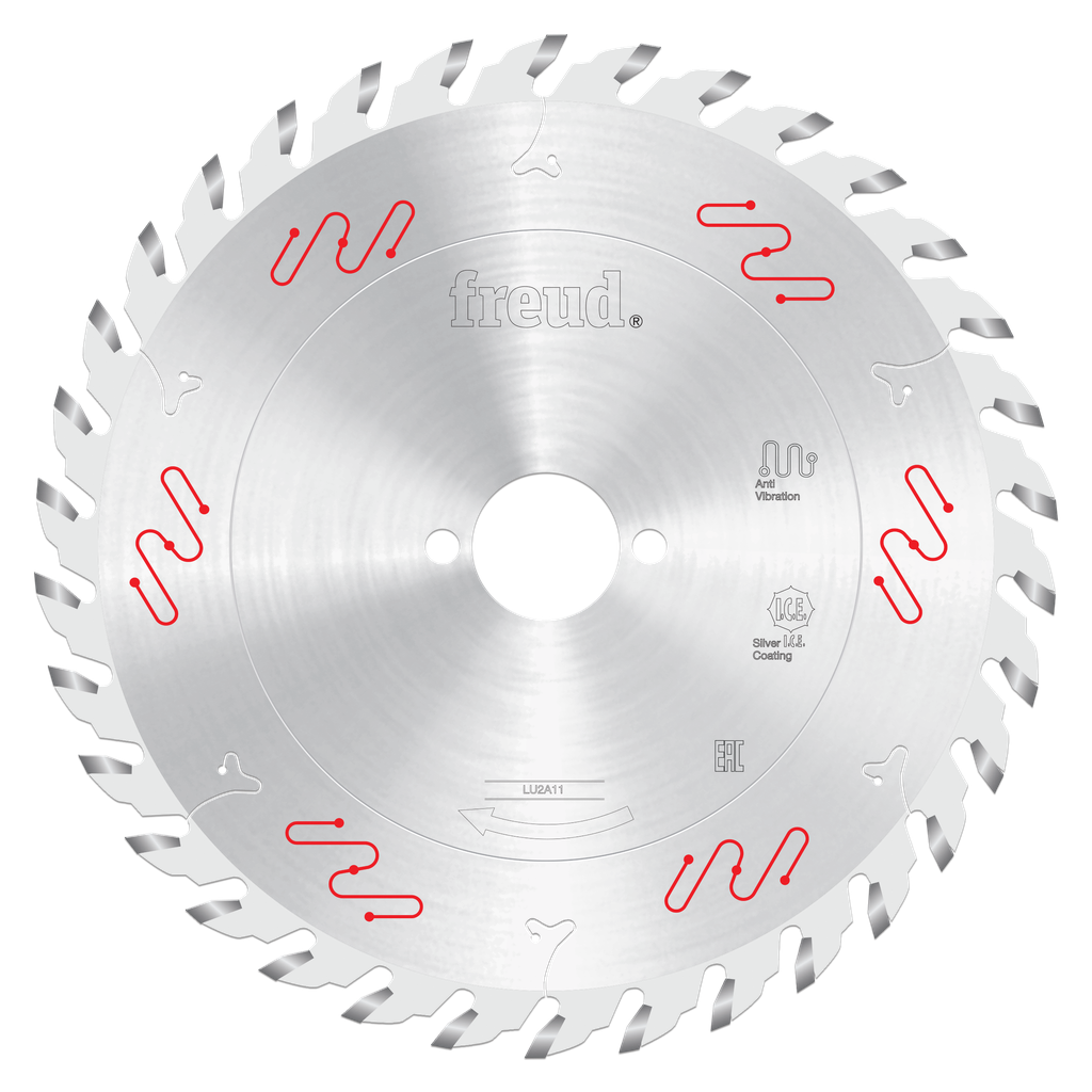 This 210mm carbide-tipped blade from Freud Tools is expertly designed for both ripping and crosscutting, making it a versatile choice for a range of woodworking applications. Featuring a Silver I.C.E. Coating, the blade maintains a cooler and cleaner performance by preventing buildup on its surface, ensuring efficient cutting through various materials such as hardwoods, softwoods, melamine, and MDF. With a positive cutting angle created by its 34 ATB teeth, paired with a unique anti-vibration design, it delivers precision and stability during operation. Whether working with plywood, chipboard, or double-sided veneers, this silent sawblade provides the reliability and quality needed for professional results.