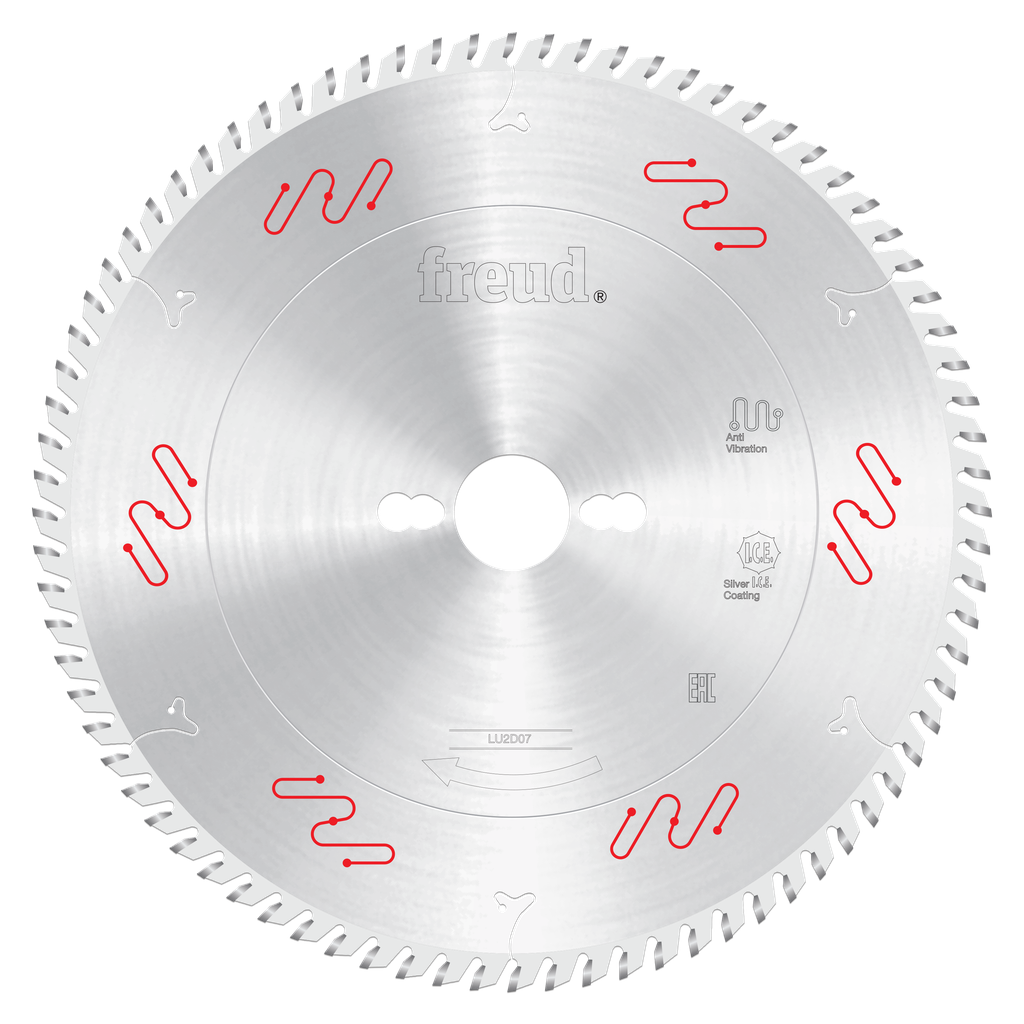 The 250mm Thin Kerf Carbide Tipped Blade for Crosscutting by Freud Tools is engineered for precision and performance, making it an essential addition for woodworking enthusiasts and professionals alike. With an impressive 80 teeth designed with an Alternate Top Bevel (ATB) grind and a positive 15° cutting angle, this blade delivers clean and precise cuts across a variety of materials including melamine, hardwoods, softwoods, MDF, and particle board. The innovative Silver I.C.E. Coating not only reduces friction but also minimizes build-up on the blade, ensuring that it runs cooler and maintains its effectiveness throughout extended use.
