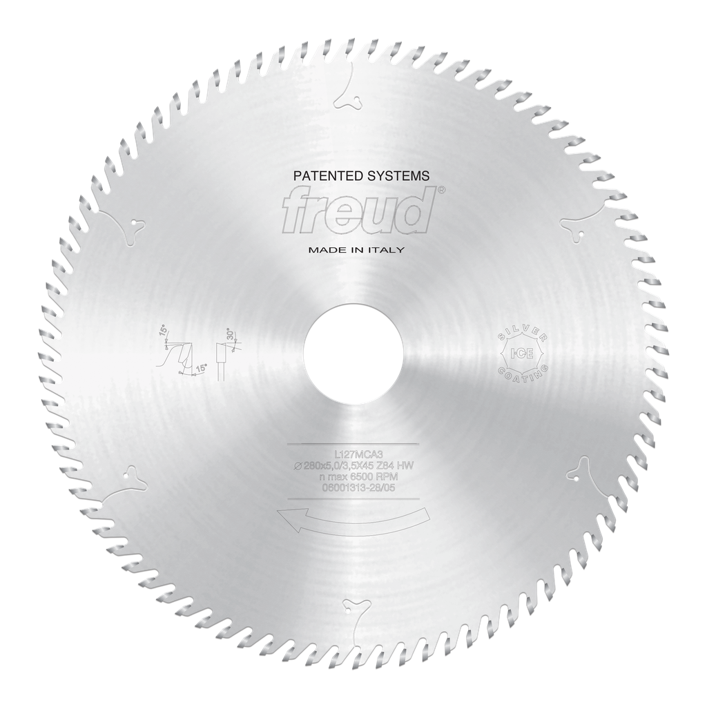 Engineered for precision in cutting a variety of materials, the 280mm Postforming Scoring blade by Freud Tools is an essential tool for anyone working with coated panels and laminates. Featuring an impressive 84 teeth and a specialized ATB grind with a positive cutting angle, it ensures clean and accurate cuts on surfaces such as plywood, MDF, and melamine. The innovative Silver I.C.E. Coating not only prevents buildup on the blade, keeping it cooler and performing optimally, but also extends its lifespan. With a 5mm kerf and a robust 280mm diameter, this scoring blade is versatile enough for diverse applications, including postforming and veneer work, making it an indispensable addition to professional workshops and cabinet-making operations.