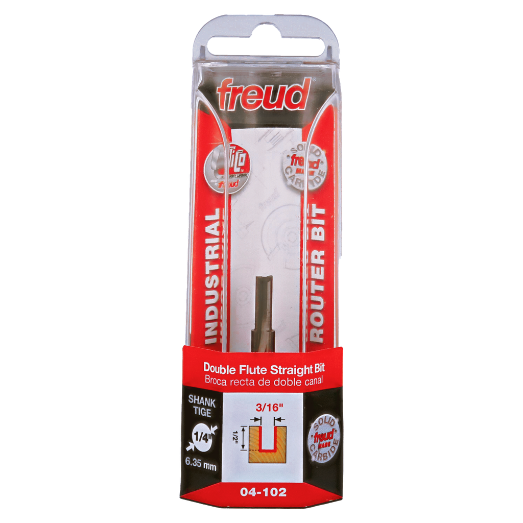 Freud 3/16″ (dia.) Double Flute Straight Bit with 1/4″ shank, 1/2″ carbide height #04-102