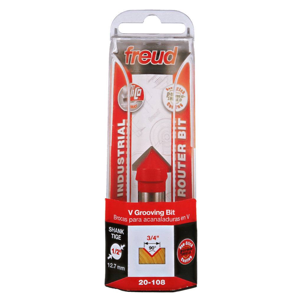Freud 3/4″ (Dia.) 90° V Grooving Bit with 1/2″ shank, 2-1/4″ overall length #20-108