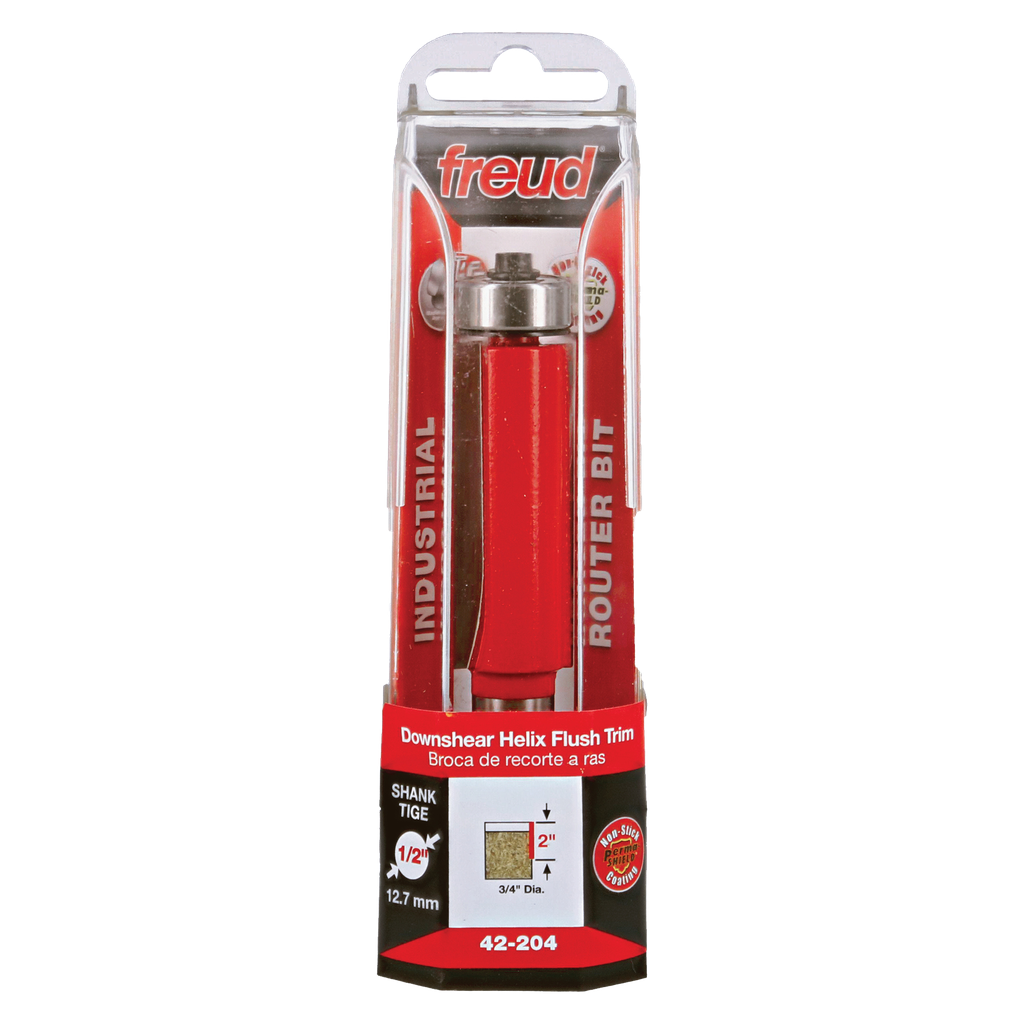 These heavy-duty bits are the ideal choice for routing thick material where a perfect finish is critical. The down-shear cutting action produces a very clean, slinter-free surface on the top edge of the cut, and the oversize 3/4″ diameter body provides extra stability for a clean face. Use the 42-310 for jobs where limited clearance does not allow room for a protruding bearing screw. Perfect for routing hardwood, softwood, plywood or composites, using hand-held or table-mounted routers.