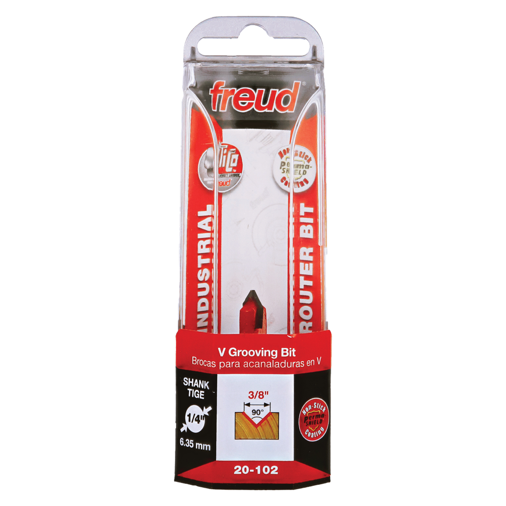 Freud 3/8″ (Dia.) 90° V Grooving Bit with 1/4″ shank, 1-3/4″ overall length #20-102