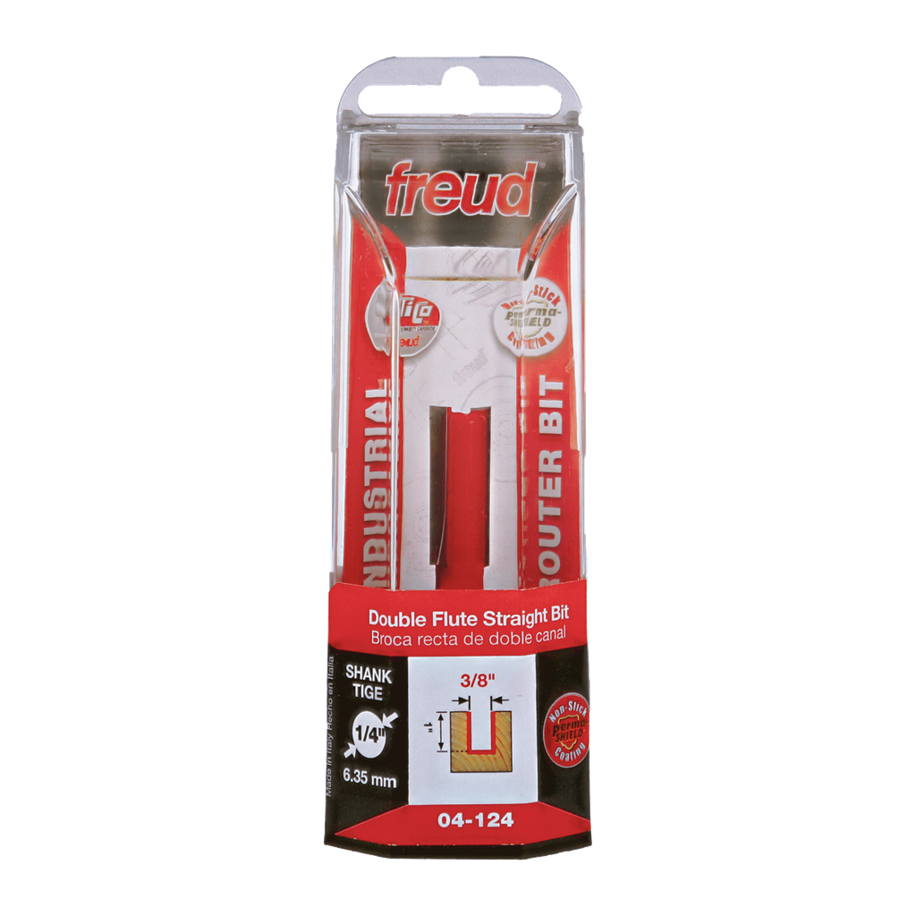Freud 3/8″ (dia.) Double Flute Straight Bit with 1/4″ shank, 2-1/2″ overall length #04-124