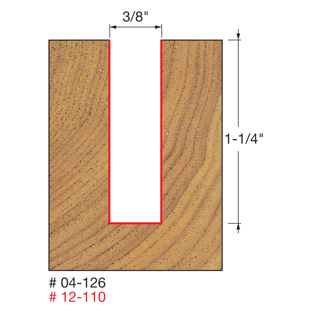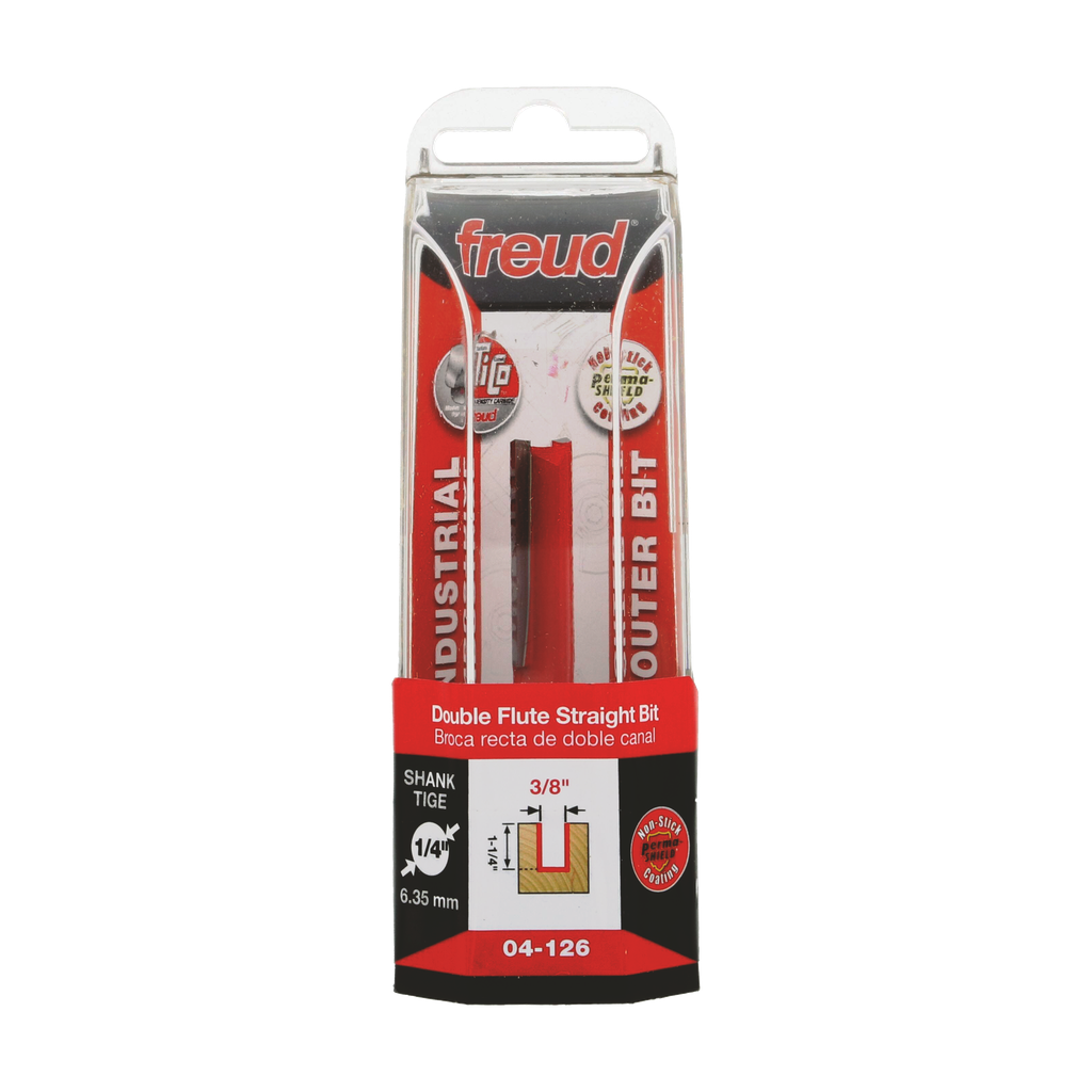 Freud 3/8″ (dia.) Double Flute Straight Bit with 1/4″ shank, 2-11/16″ overall length #04-126